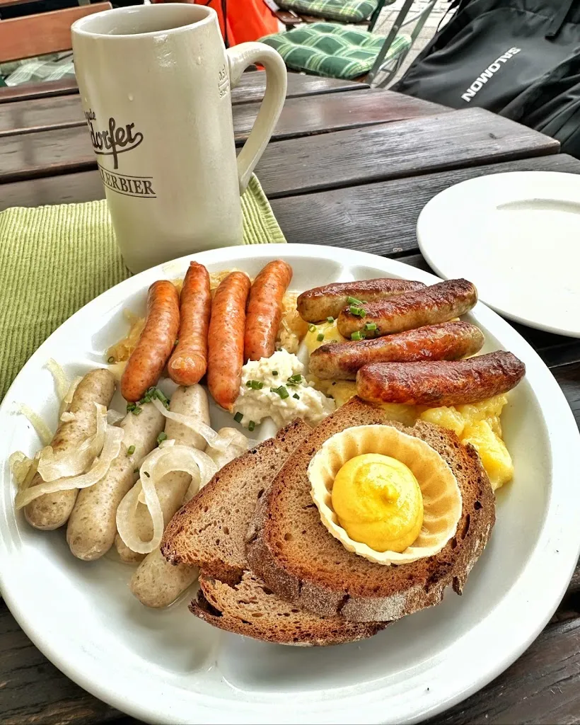 Wir haben die Wurstplatte ausprobiert, die perfekt für Touristen geeignet ist. Sie können verschiedene Arten von Nürnberger Würstchen probieren. Ich persönlich mochte diejenigen, die am meisten mit Essig gekocht wurden - sie waren erfrischend und leicht. Die 12 Würste waren genau der richtige Betrag für zwei Personen. Der Kartoffelsalat war auch unglaublich lecker!