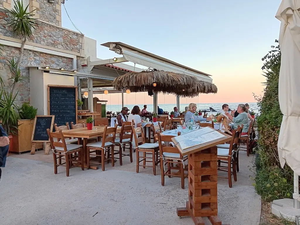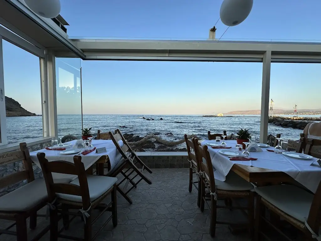 Der kurze Spaziergang von der Innenstadt von Georgioupolis lohnt sich. Tolles Restaurant direkt am Wasser mit gutem Service und schönen Fischgerichten. Auch viele Nicht-Fischgerichte. Schnappen Sie sich einen Tisch, während das Wasser nur wenige Meter entfernt ist, und genießen Sie die Aussicht auf die Küste, das Boot …