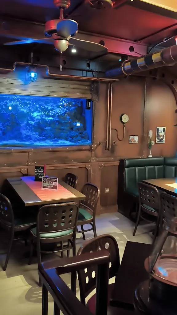 This place was very fun as well the food was quite good. I had the fish with spinach. Seafood and fish seems to be the specialty here though other German food like schnitzel is also available. Waiting staff was very friendly. Dogs are allowed in the restaurant.