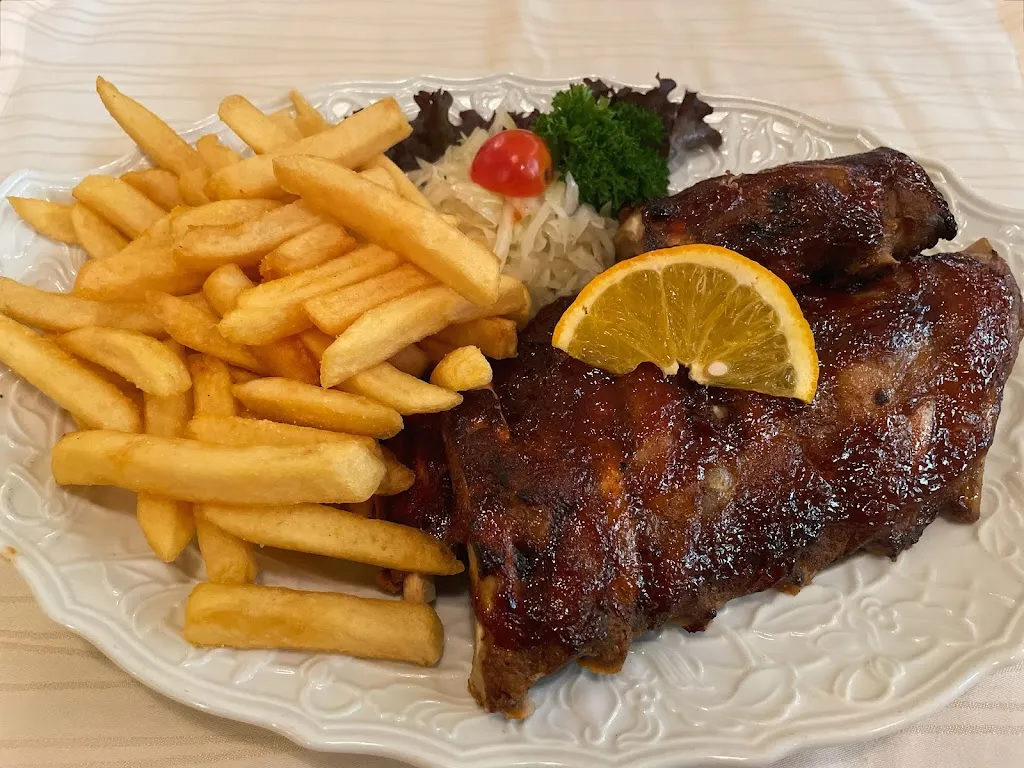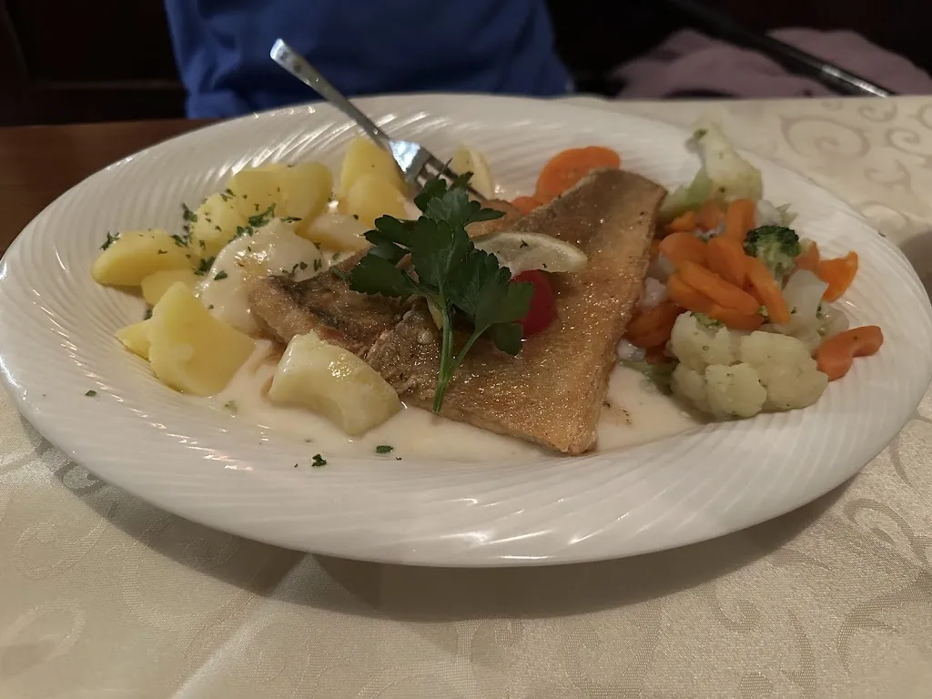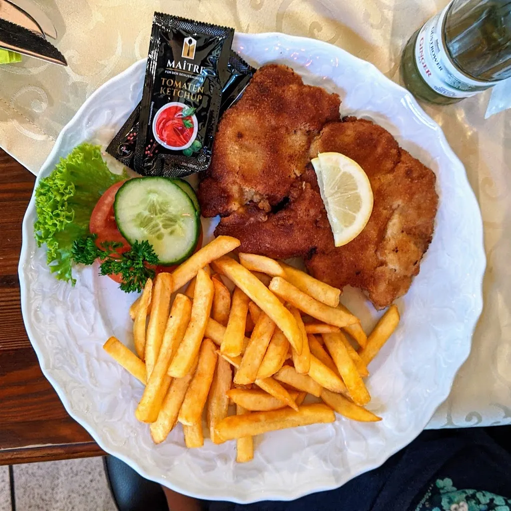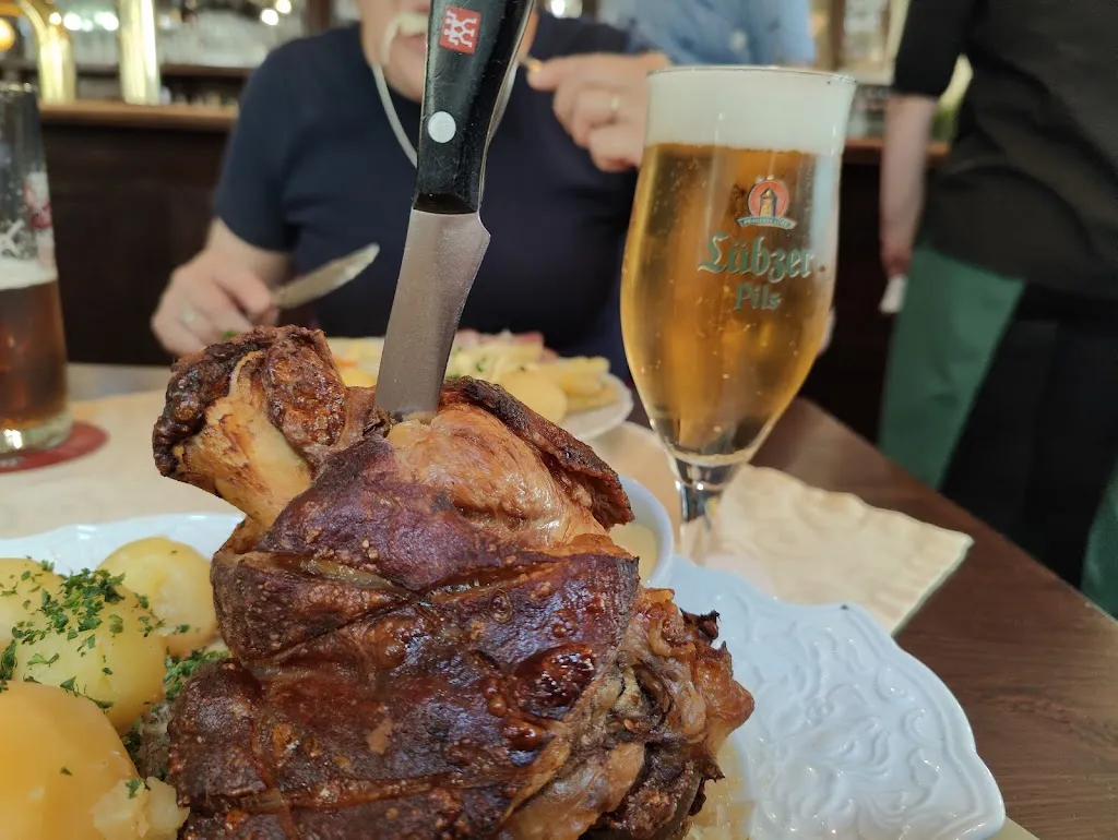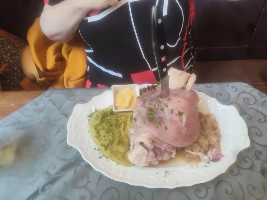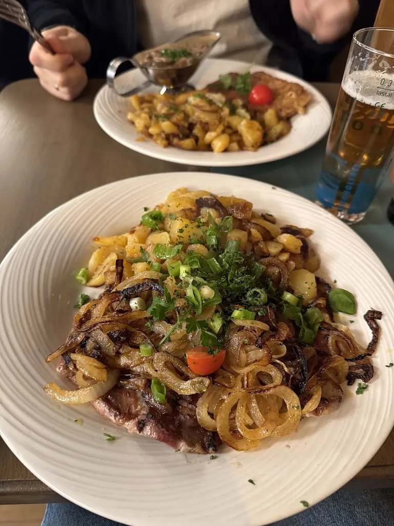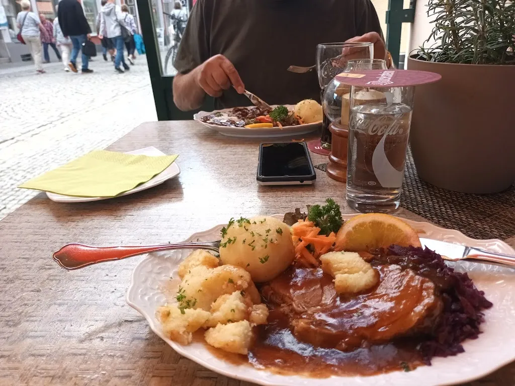 Place is very stylish, loved the paintings on the walls, super lovely atmosphere of history and town itself, workers are very friendly, food is German good quality, a bit fatty, but not too much, you can find diet options in the menu too. We came on Friday evening, families and locals had dinner. Loved it here, recommend.