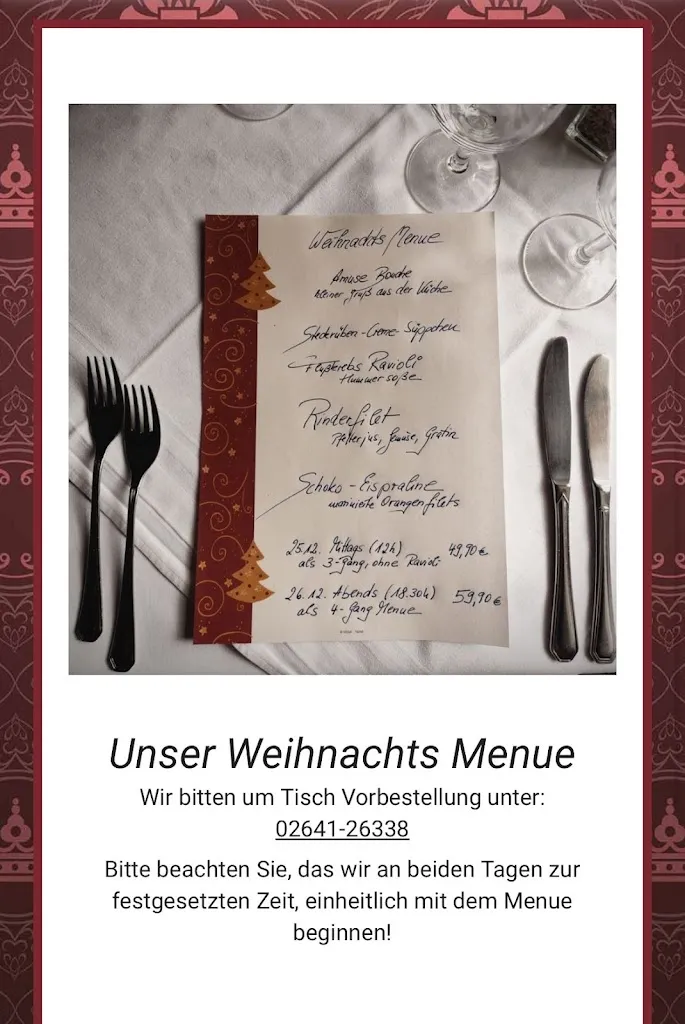 Quaint and with a warm local feeling. We had a holiday meal here Gänzekeule (Roasted Duck with Rotkohl), and it was not cheap, but it was worth it. An ideally made dish. Wood tables, well decorated and a friendly staff. Would like to try dinner here outside the holidays. Have heard good things about the chef.