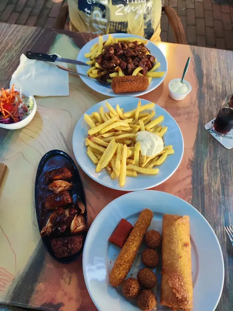 "Op de Boom" Café Cafetaria is a restaurant located in Koningsbosch, offering a range of options including Has outdoor seating, Offers takeaway, Serves dine-in, No delivery. Known for Has great beer selection, Serves great coffee, it features a menu with items such as Zuurvlees, Spareribs, Pommes Mit Mayonnaise.